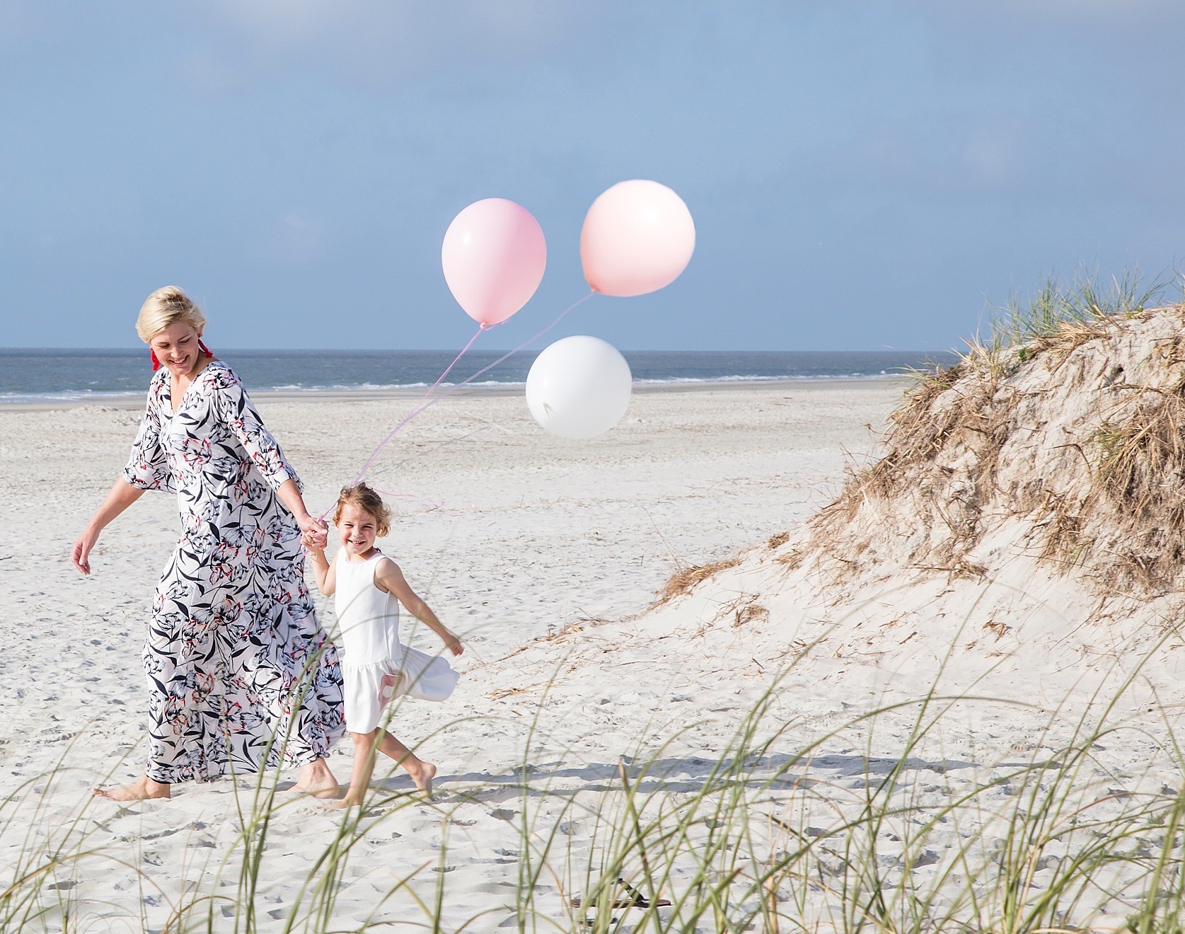In her memory today, we did a balloon release. We dressed up (of course), got the biggest pink and white balloons we could find, and headed to the beach to honor her. Hattie was only 2 when she passed, so we talk about “grammy” when storms roll through. She’s up there playing the drums for us, we say. And balloon releases so that we can keep her alive in our family. And as we let go of the last white balloon Hattie said, here comes the last one grammy. Make sure you catch it.